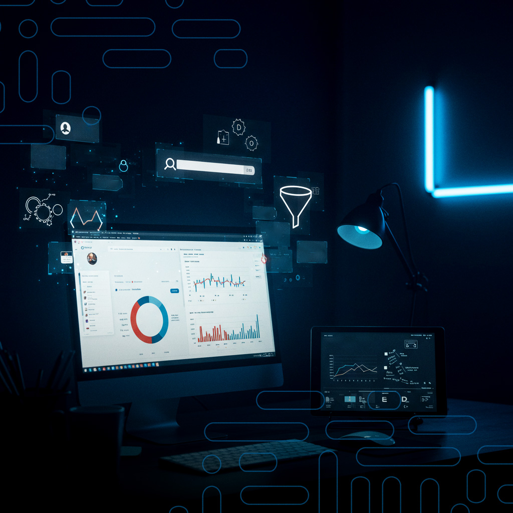 نُطوّر مواقع إلكترونية سريعة التحميل وتطبيقات هواتف ذكية لتلبية أهدافك التسويقية الالكترونية. نُركّز على تصميم تجربة مستخدم (UX/UI) احترافية، تتوافق مع الهواتف المحمولة، وتهيئة متقدمة لمحركات البحث SEO، مع برمجة آمنة وقابلة للتطوير
