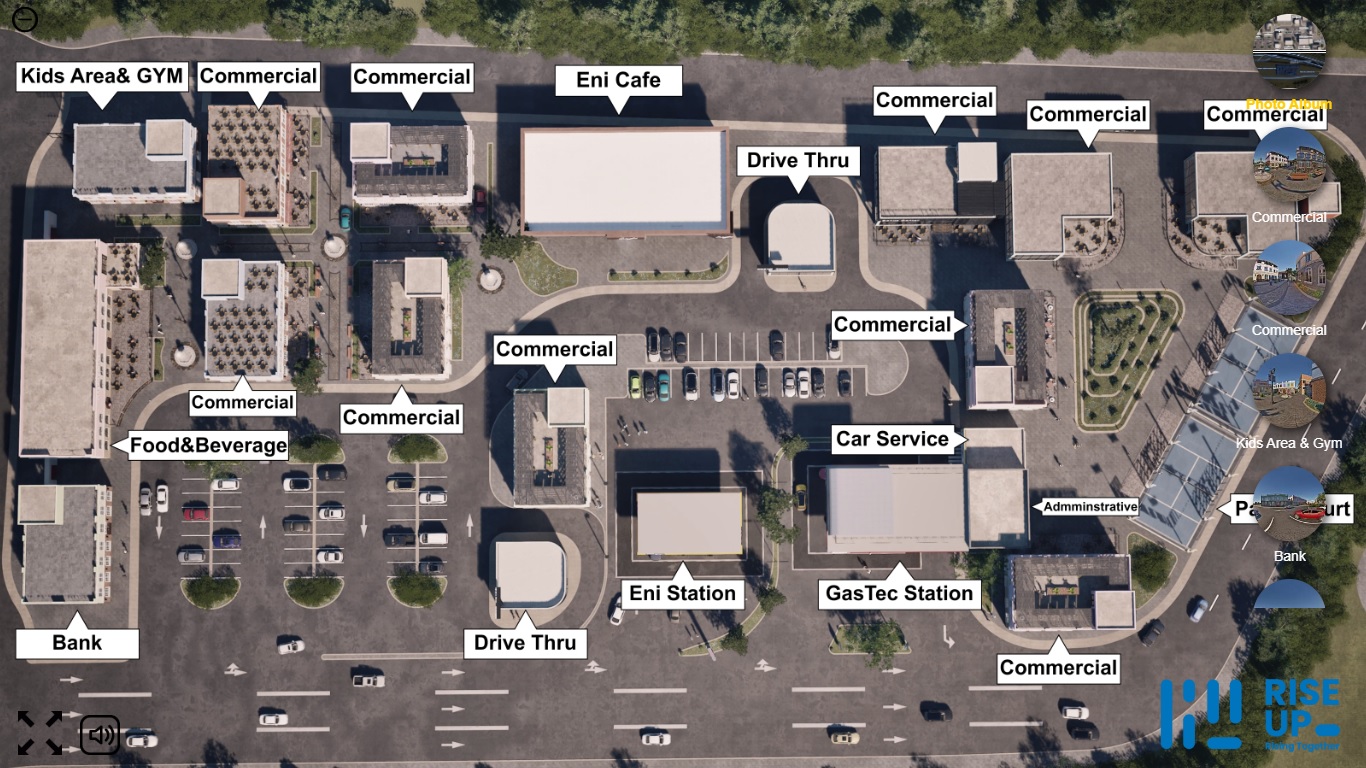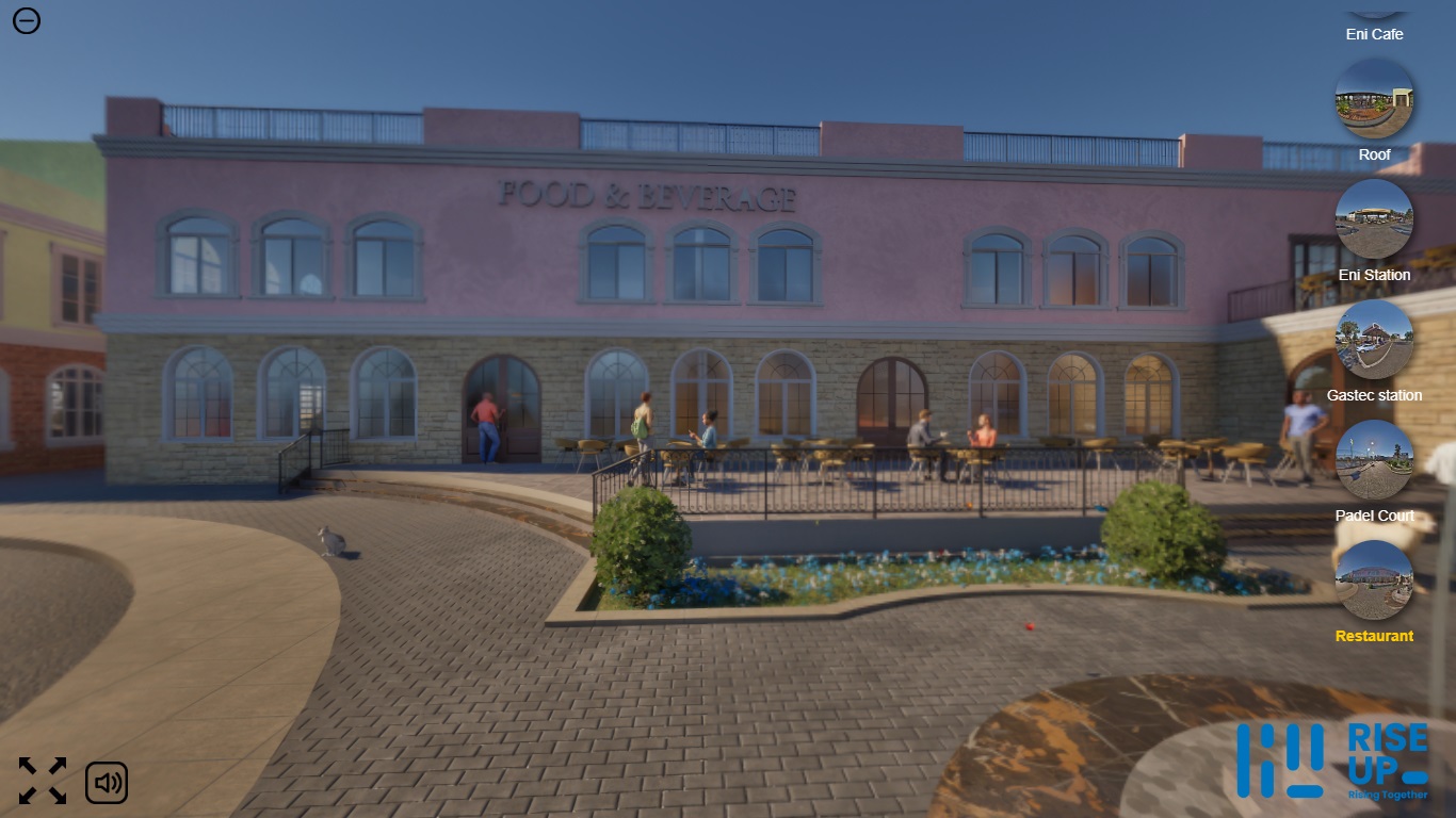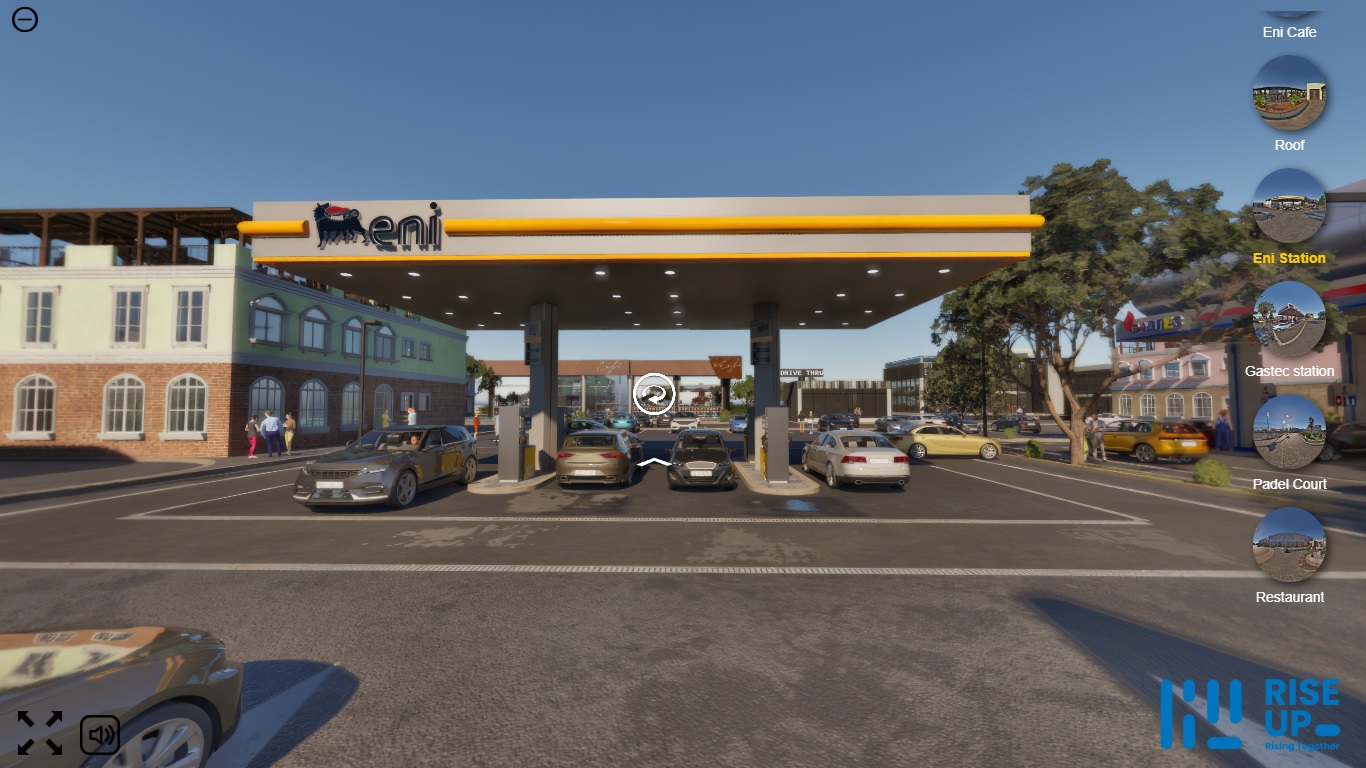 قدمت RiseUp Studio تجربة تفاعلية متقدمة ورسوم متحركة ثلاثية الأبعاد لشركة GASTEC لعرض مشروع Piazza Grande — مجمّع حديث لمحطات الوقود يضم مطاعم، مقاهي، ومناطق خدمية.